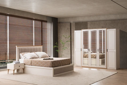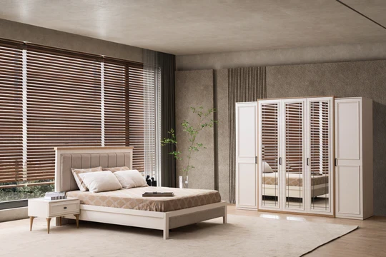 Alaçatı Modern Yatak Odası, şıklığı, konforu ve fonksiyonelliği bir araya getiren, modern yaşam alanları için ideal bir seçenektir. Yüksek kaliteli malzemeler, özenli tasarım ve müşteri odaklı hizmet anlayışımızla, size uzun yıllar boyunca keyifle kullanabileceğiniz bir yatak odası sunuyoruz.
